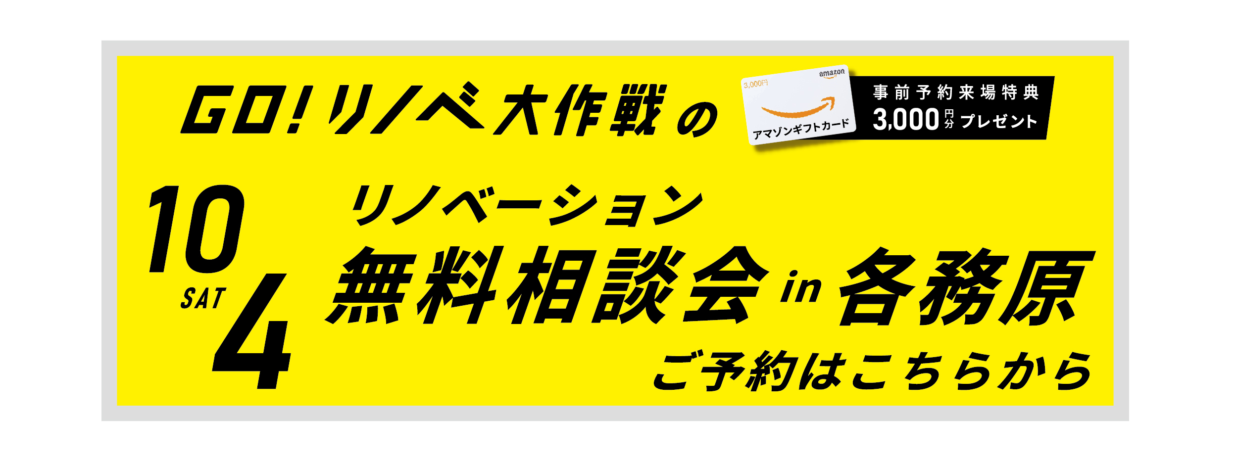 イベント 終了 10/4(土)各務原 リノベーション無料相談会 GO!リノベ大作戦 開催日 2025.10.04(土) 時間 9:00~17:00 場所 リビングスタジオ ラクラシエ ポイント 予約フォーム 予約フォームからのご予約はこちらから 電話 0120-239-238 >アクセスマップ