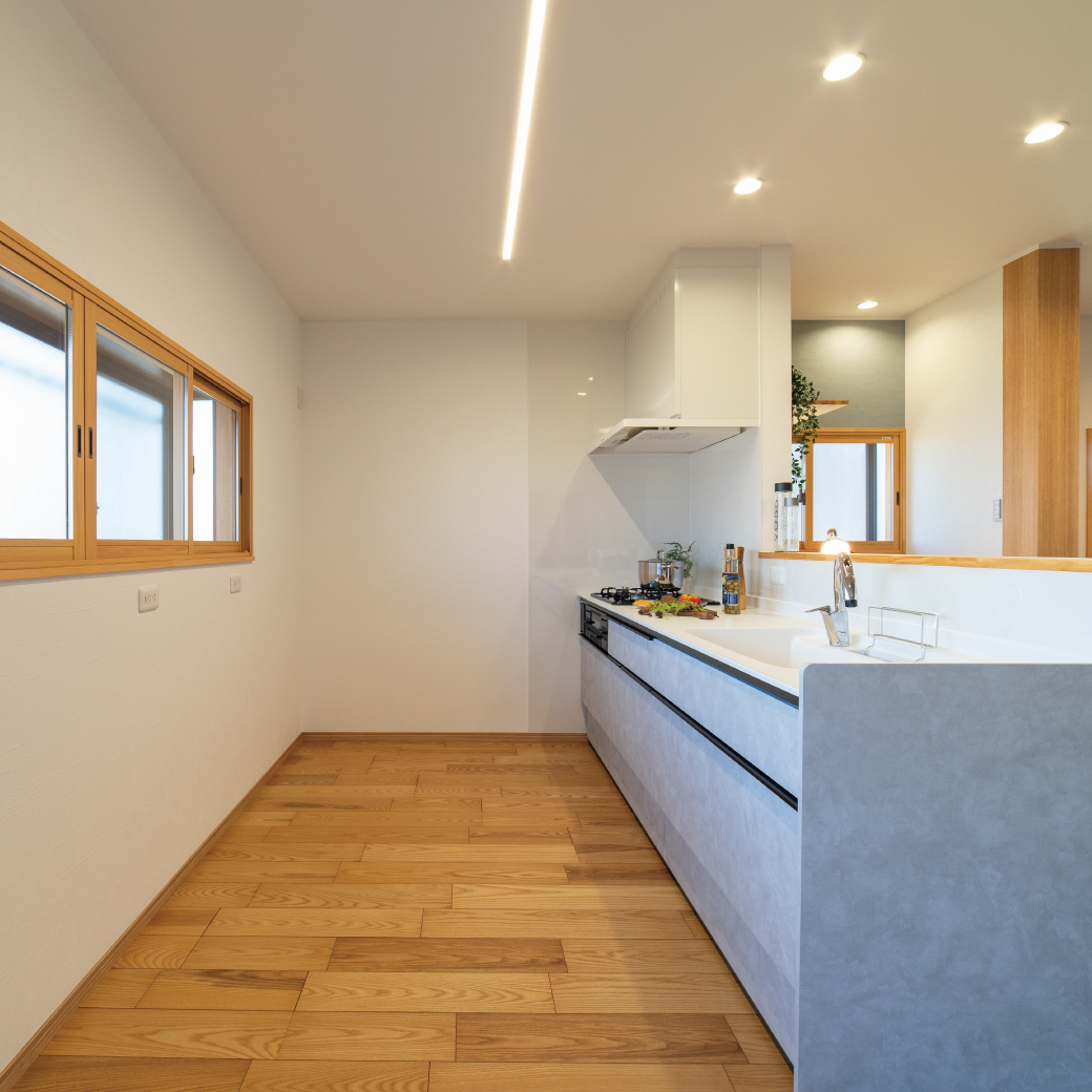ダイニングキッチンと和室の間の壁は取り除き、18.5帖の明るく広々としたLDKとなりました。内窓を設置して断熱性も向上し、3世代みんなが快適に過ごせます。