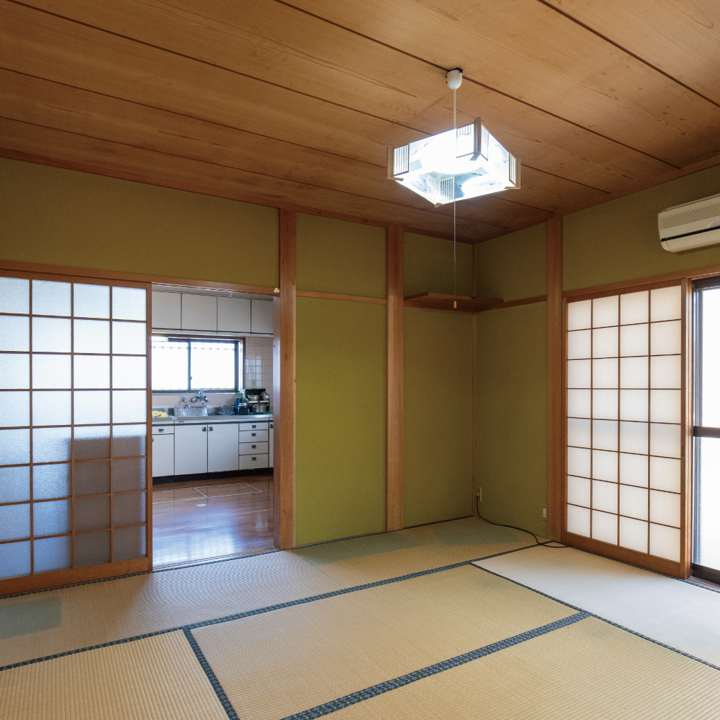 もともとは10帖のダイニングキッチンと8.8帖の和室があり、お子様世帯が帰省した時に食事をすると窮屈になることがお悩みでした。また、床が沈む個所があったり、タイルの浴室やトイレがお手入れしづらいので改善したいというご希望がありました。